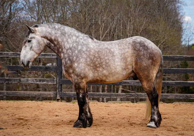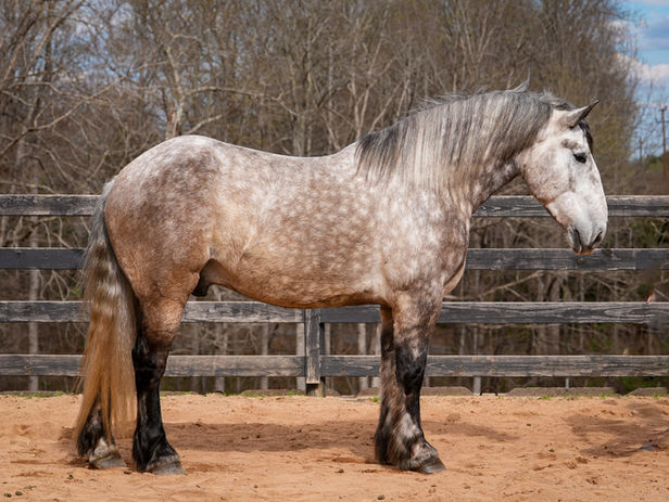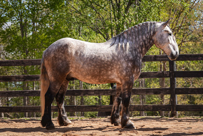 Chief stands a solid 16.1 hands — a powerful, well-built Percheron cross gelding with the bone, substance, and presence that make people stop and take a second look.