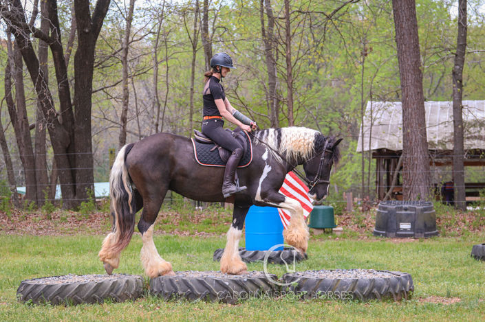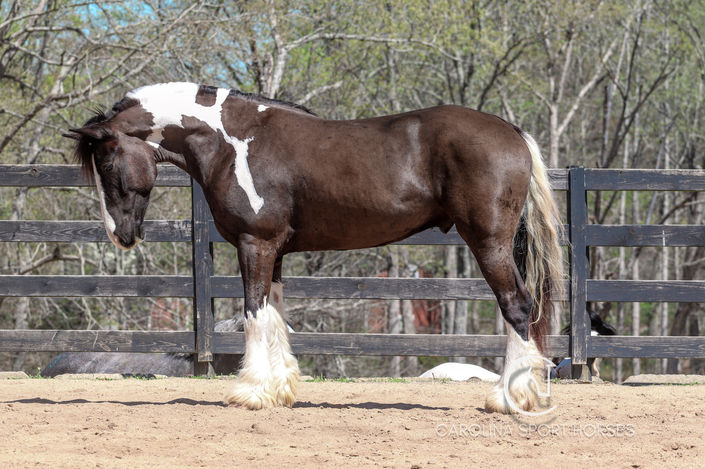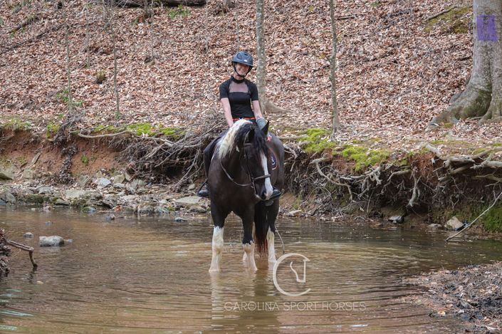 Neptune is a coming 5 year old Gypsy Vanner x Percheron gelding standing 16.1 hands high. If you want a horse you can pull out of the stall and go out for a hack, hunt, or trailer to a friends, and never have to worry about feeling unsafe, Neptune is your man. This sweet gelding really checks all of the boxes. He has the quiet mind and sensible nature that everyone needs, has the athletic ability and talent for the rider who wants it, the kind and lovable personality that everyone loves, and of course show stopping looks to boot! Neptune is safe for the kids, smart around the hounds, and don't let those big feet fool you, he has the smoothest and slowest canter around. Watch him on the cross country field or hunter paces, he gracefully jumps any fence you put in front of him. There isn't much you can't do with Neptune, horse lover or not, you will find yourself enchanted by him!