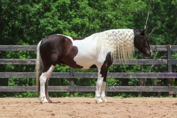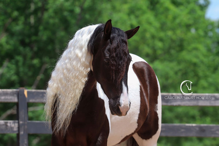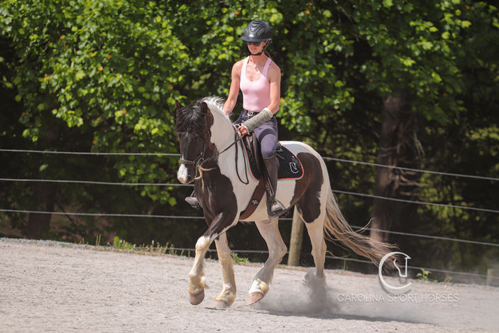 Princeton is a 6 year old Friesian x Paint Horse gelding standing 14.3 hands high. Princeton is absolutely one of a kind, and what every equestrian dreams of. He checks absolutely every box; Educated, experienced, kind, forgiving, safe, sensible, and above all, beautiful. He is simply dreamy, in every way! Absolutely any rider will be able to safely enjoy Princeton, and feel confident every step of the way! In the saddle, you will be smiling from ear to ear. He is the perfect horse to de-stress with, learn on, grow with, and enjoy for years and years to come. On the ground, you will fall in love instantly with his silly and sweet personality. He is always giving kisses, nuzzling you, and following you around the barn and fields. Princeton is a rare find, horses like him are truly once in a lifetime. Whether you want to bring home the blues in the show ring, hunt, hit the trails, or all of the above, Princeton is ready to be a tried and true parter with you!
